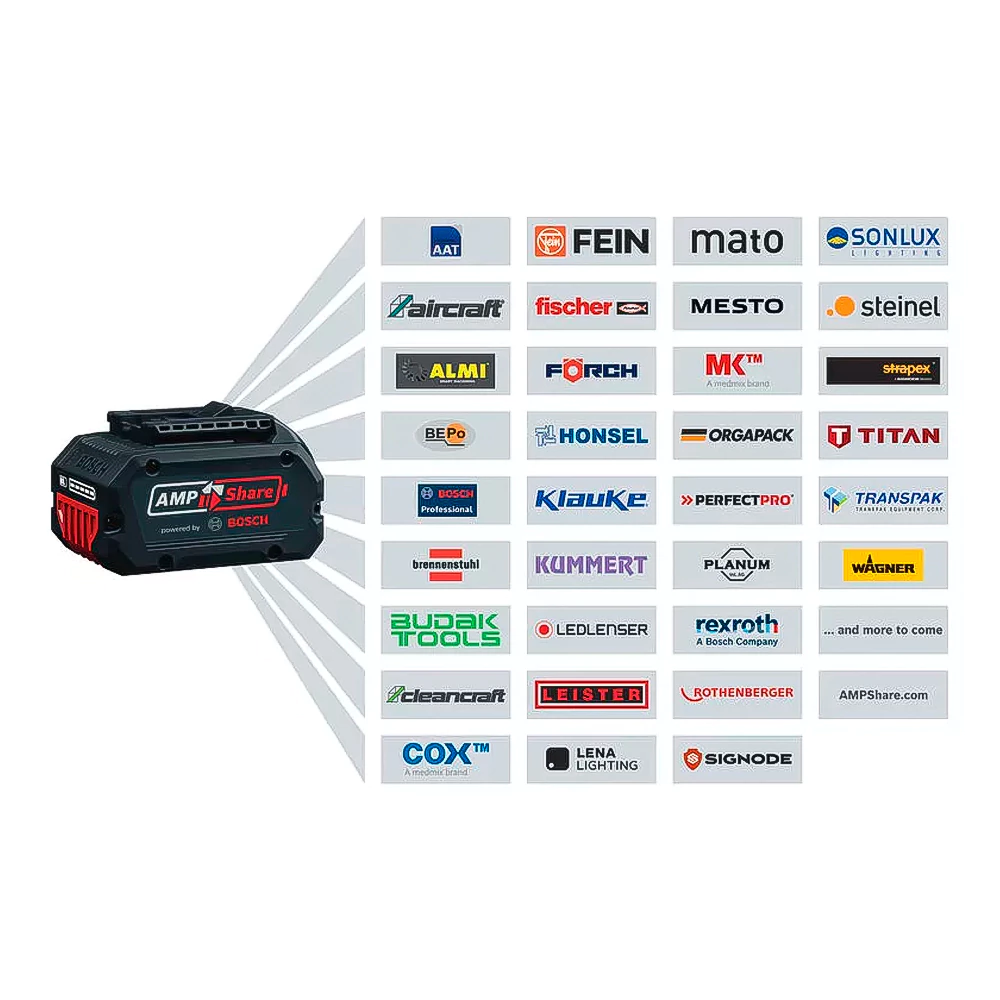 Sistema Bosch Professional 18V: 100% compatível com todas as baterias Bosch Professional de 18 V.